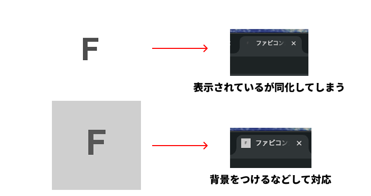 透過ファビコンは、表示される場所の背景色によって見え方が大きく変わります。まずこの前提を押さえておきましょう。